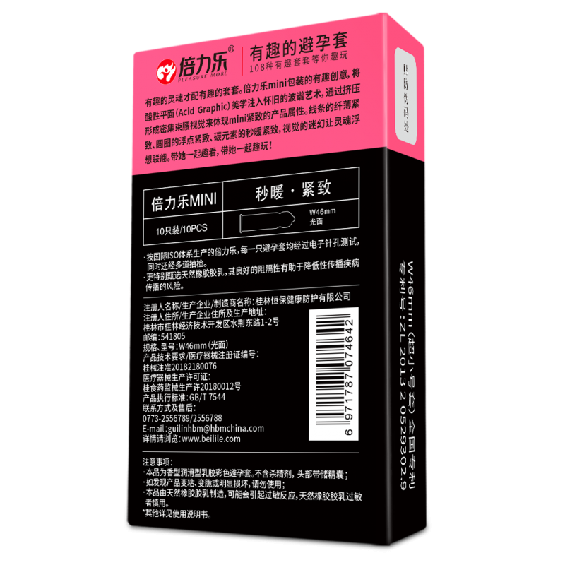 【避孕润滑】倍力乐小时代MINI安全套10只装(绿黄粉包装随机发)